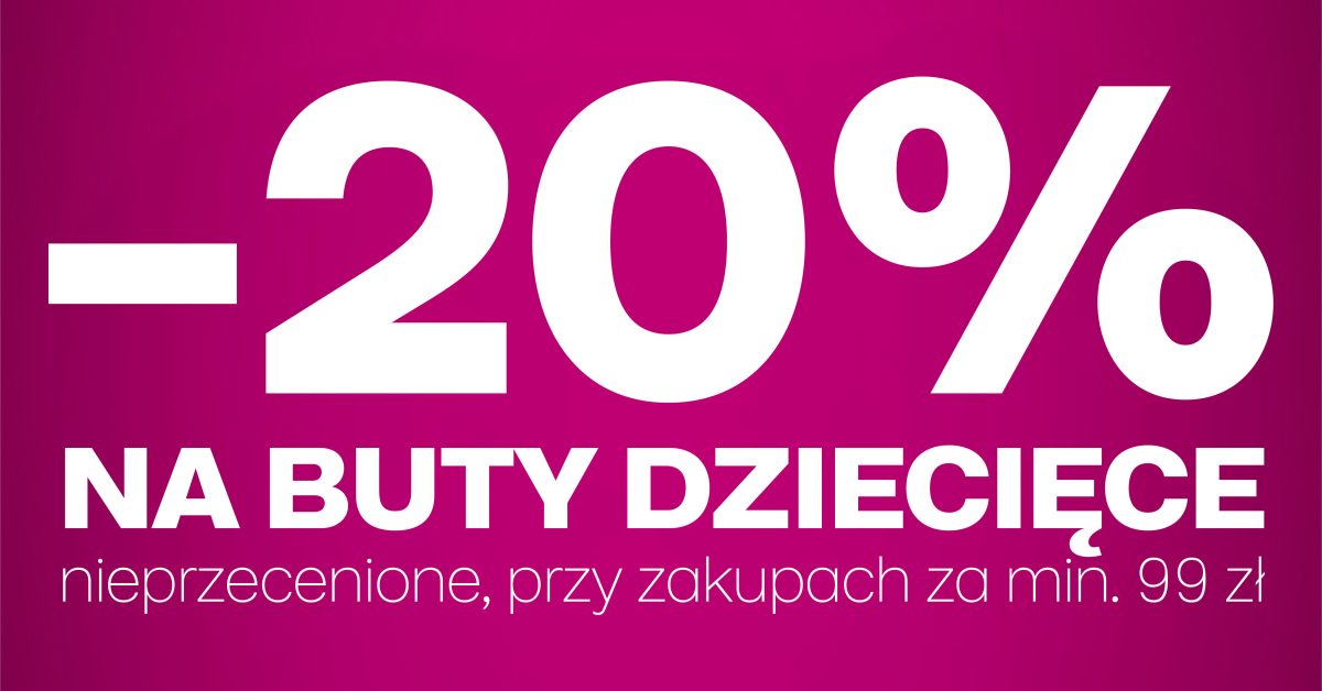 -20% na wszystkie nieprzecenione buty dziecięce. Oferta jest ważna z kartą Deichmann PLUS, przy zakupach za min. 99 z