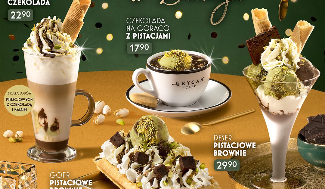 Do 17 lutego 2026 r. w sieci lodziarnio-kawiarni GRYCAN dostępna jest wyjątkowa, karnawałowa oferta, inspirowana dubajskim bogactwem smaków i kontrastem struktur. Menu łączy intensywne nuty czekolady z kremową pistacją oraz elementami chrupkości i słodyczy. Deser Pistacjowe Brownie, Gofr Pistacjowe Brownie, a może Czekolada na gorąco z Pistacjami lub kawa Latte Macchiato Pistacja & Czekolada? Każda z tych propozycji zachęca do celebracji i wprowadza w karnawałowy nastrój.
