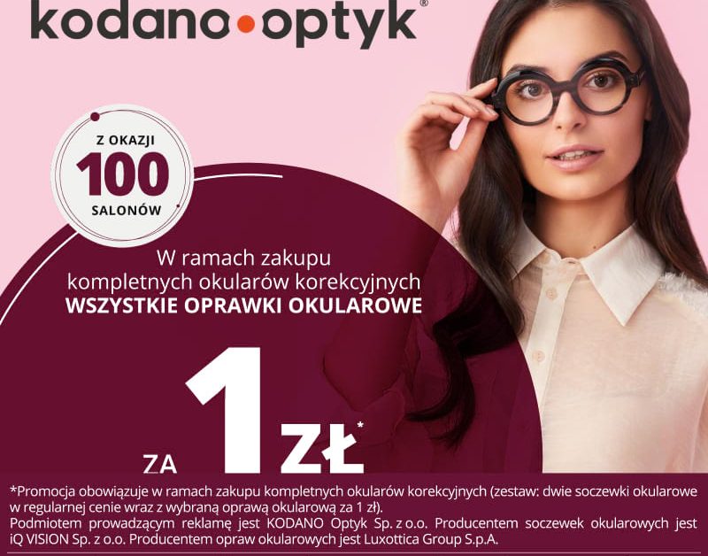 Mamy już 100 salonów! Z tej okazji WSZYSTKIE oprawki okularowe za 1 zł!