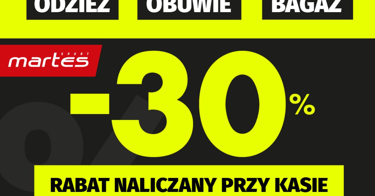 Odwiedź sklep stacjonarny Martes Sport i wskocz w wiosenny vibe z wyjątkowym rabatem! Teraz ODZIEŻ, OBUWIE oraz BAGAŻ kupisz aż 30% TANIEJ!