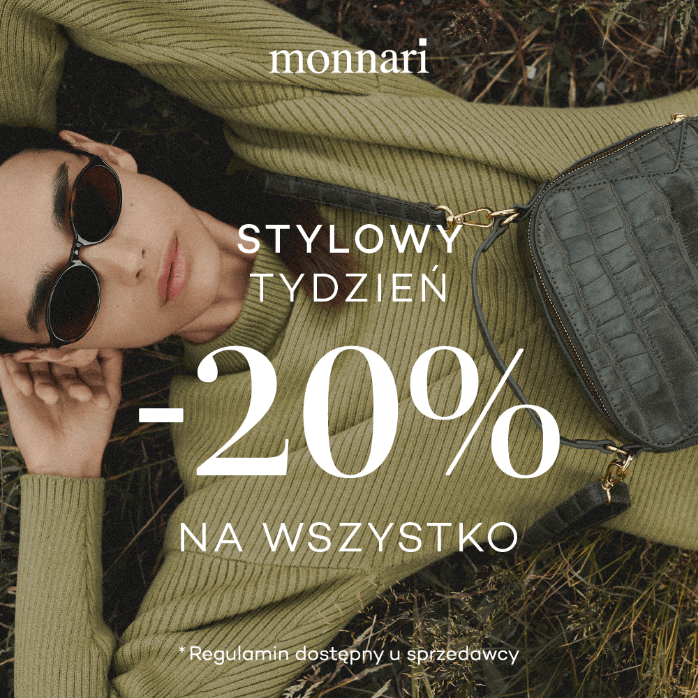 Stylowy Tydzień w Monnari Przez cały tydzień ciesz się wyjątkową okazją -20% na wszystko! To doskonały moment, aby odświeżyć swoją garderobę i postawić na modne dodatki, które podkreślą Twój styl.