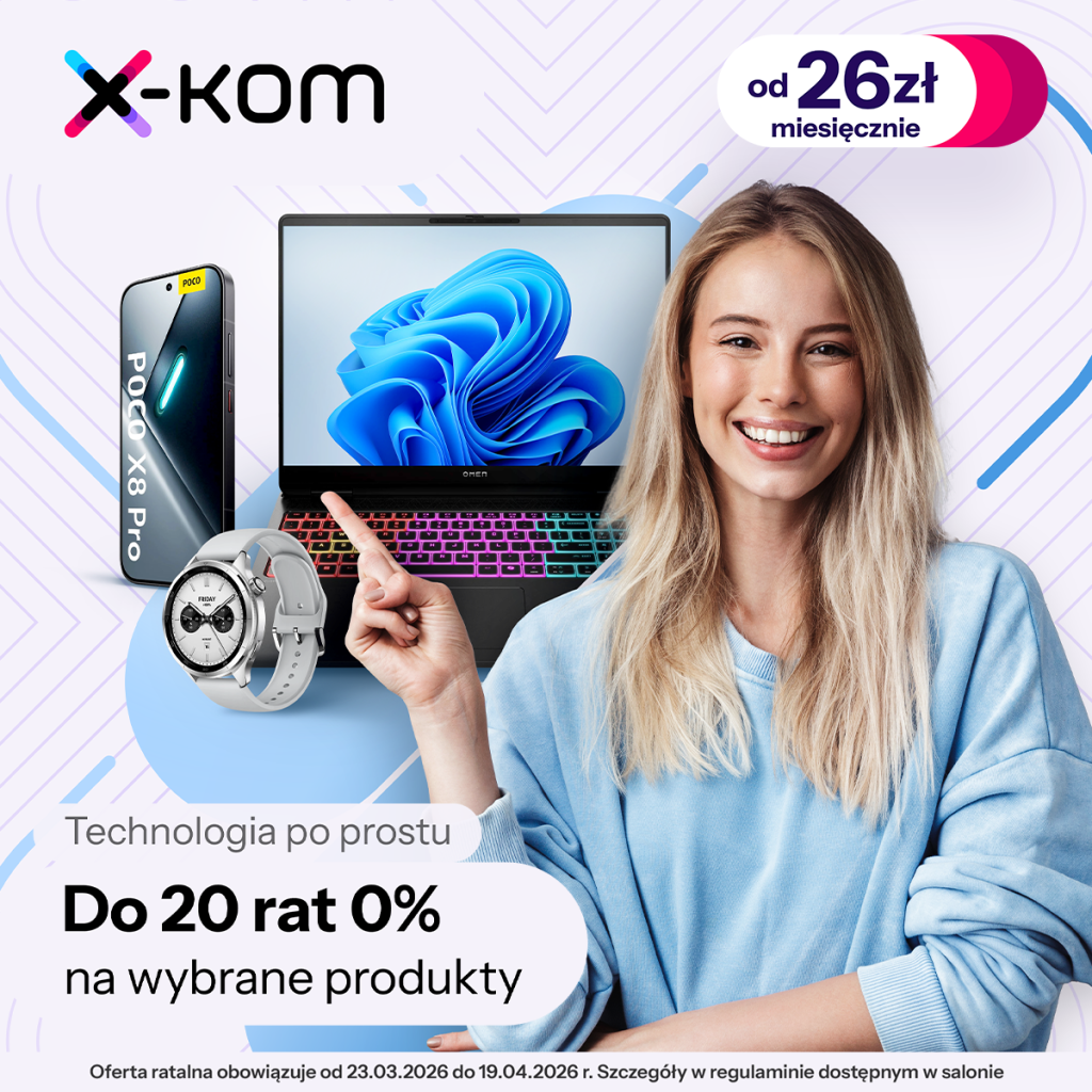 Marzysz o nowym smartfonie, laptopie lub desktopie? Teraz możesz mieć go już od 26 zł miesięcznie – bez oprocentowania i bez ukrytych kosztów! Skorzystaj z promocji do 20 rat 0%. Odwiedź salon i wybierz sprzęt dopasowany do swoich potrzeb – doradcy pomogą znaleźć najlepsze rozwiązanie i wygodną formę finansowania. Zapraszamy – salon x-kom, „parter obok wejścia od ulicy Broniewskiego.”